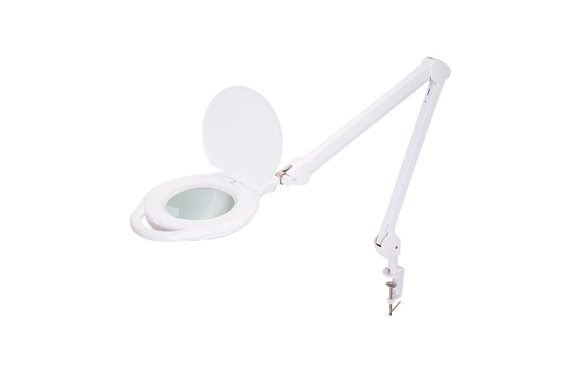 Лупа устанавливается на удобную струбцину, которая позволяет надежно закрепить устройство на рабочей поверхности. Благодаря своей компактности и легкости, лупа легко перемещается и хранится.