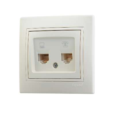 Розетка компьютерная + телефонная. Особенности заключаются в европейском дизайне. в повышенной безопасности негорючего поликарбонатного ПК-пластика. в более прочном и устойчивом к механическому воздействию покрытии. в простом монтаже и демонтаже.Напряж