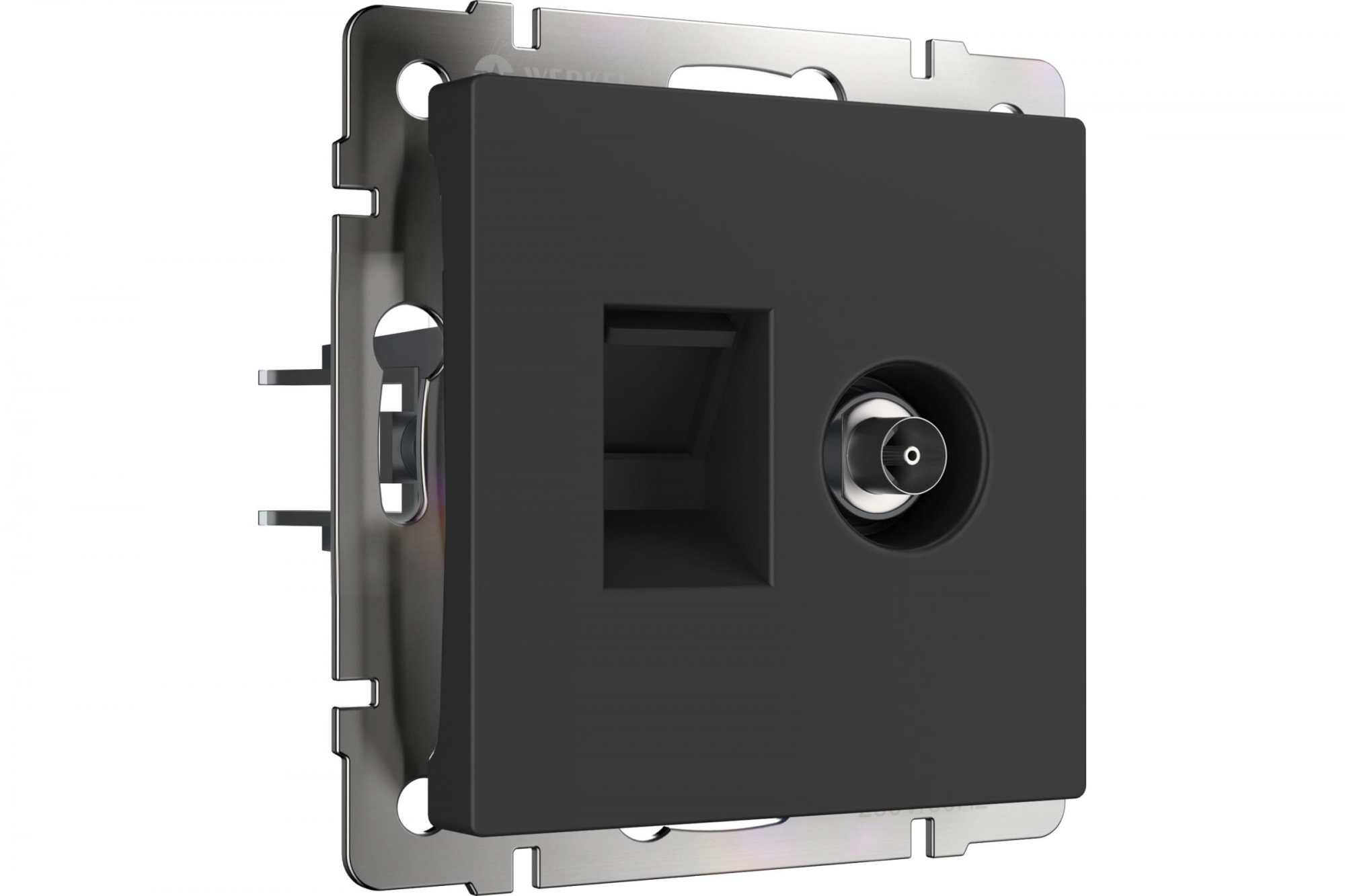 Розетка Werkel W1181308/ Розетка ТВ+Ethernet RJ-45 6 cat.(черный матовый) a056112 - это отличное решение для подключения телевизионного и Ethernet-кабеля в вашем доме или офисе. Она сочетает в себе функциональность, стильный дизайн и высокое качество, чтобы удовлетворить все ваши потребности в сетевом подключении.