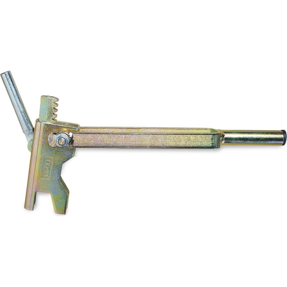 Ключ для фиксации пружинных зажимов Prom, Hit, TVT и TeaM активно используется в строительстве при монтаже опалубки. Сначала зажимы размещают на концах арматуры или катанки, выходящих из щитов опалубки, а затем фиксируют до упора ключом для обеспечения прочности и жесткости конструкции. Плотная стяжка необходима для предотвращения разрыва опалубки в процессе заливки бетона. Вручную затянуть зажим до такого упора невозможно. Фиксация ключом происходит с помощью рычага. Для распалубки зажима ключ не применяется. Чтобы снять зажим, достаточно по его язычку нанести несильный удар молотком. Ключ изготовлен из стойкой к коррозии и весовым нагрузкам стали.