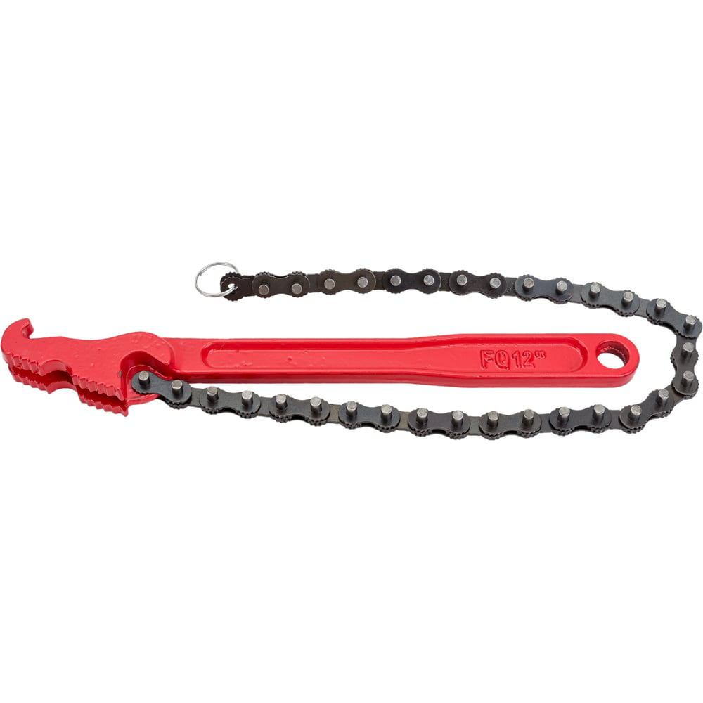 Цепной ключ FIT усиленный 64794 помогает откручивать крепеж больших размеров, упрощает монтаж трубных конструкций благодаря захвату. Инструмент оснащен прочной рукояткой, которая не изгибается в процессе работы. Ключ окрашен - имеется защита от коррозии. Также поверхность не скользит в руках - можно приложить больше усилий. Подойдет для демонтажа масляных фильтров.