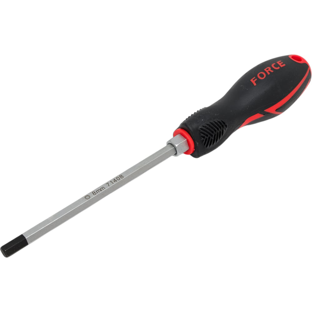 Отвертка шестигранник 8 мм FORCE 71408 разработана для монтажа/демонтажа крепежа в автомобилях, сложных инструментах или электронике. Удобная рукоять не проскальзывает в ладони, что упрощает эксплуатацию инструмента.