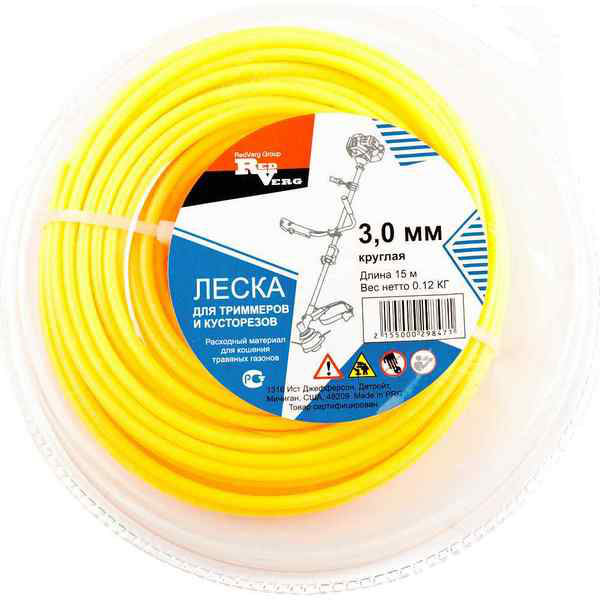 Леска для триммера RedVerg диаметром 3,0 мм и длиной 15 метров предназначена для использования в садовых триммерах. Круглая форма лески обеспечивает эффективное срезание сорняков, травы и другой растительности. Прочный материал обеспечивает долгий срок службы и высокую износостойкость. Леска легко устанавливается в триммер и обеспечивает четкий и ровный срез. Идеальный выбор для поддержания ухоженного вида участка и сада.