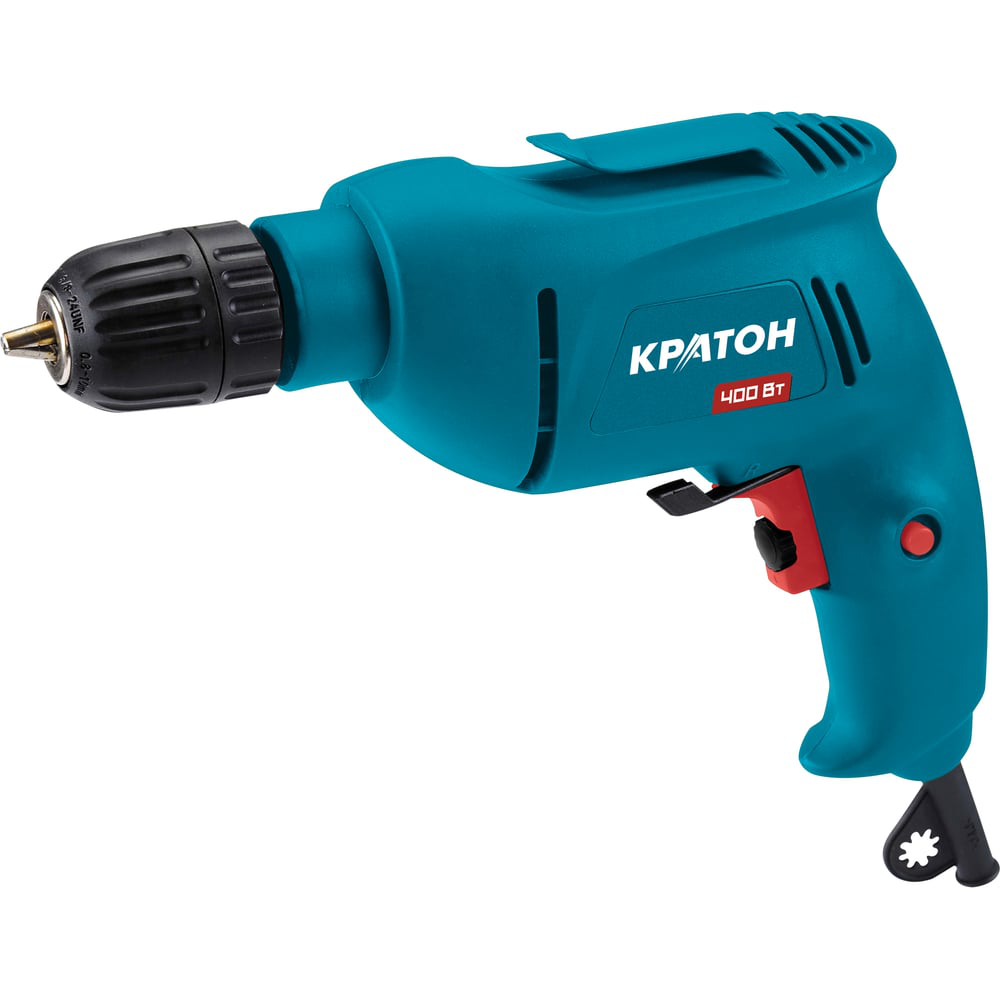Дрель Кратон D-400/10 HOBBY 3 02 01 026 служит для сверления отверстий в металле, пластмассе и древесине. Благодаря электронной регулировке частоты вращения можно подобрать оптимальный рабочий режим в зависимости от вида материала. Для быстрой и легкой замены оснастки модель оснащена быстрозажимным патроном. Небольшие габариты и вес инструмента делают работу с ним более комфортной. Легкая пистолетная дрель имеет компактные размеры и удобна для удержания одной рукой. Для быстрого крепления насадок, прибор оснащен патроном быстрозажимного типа. Такой способ позволяет менять сверла без ключей.Переключение в режим реверса позволяет достать заклинявшее сверло. На корпусе инструмента предусмотрено крепление-скоба для подвешивания прибора на пояс. Питание двигателя 400 Вт осуществляется от обычной электросети 220 В.