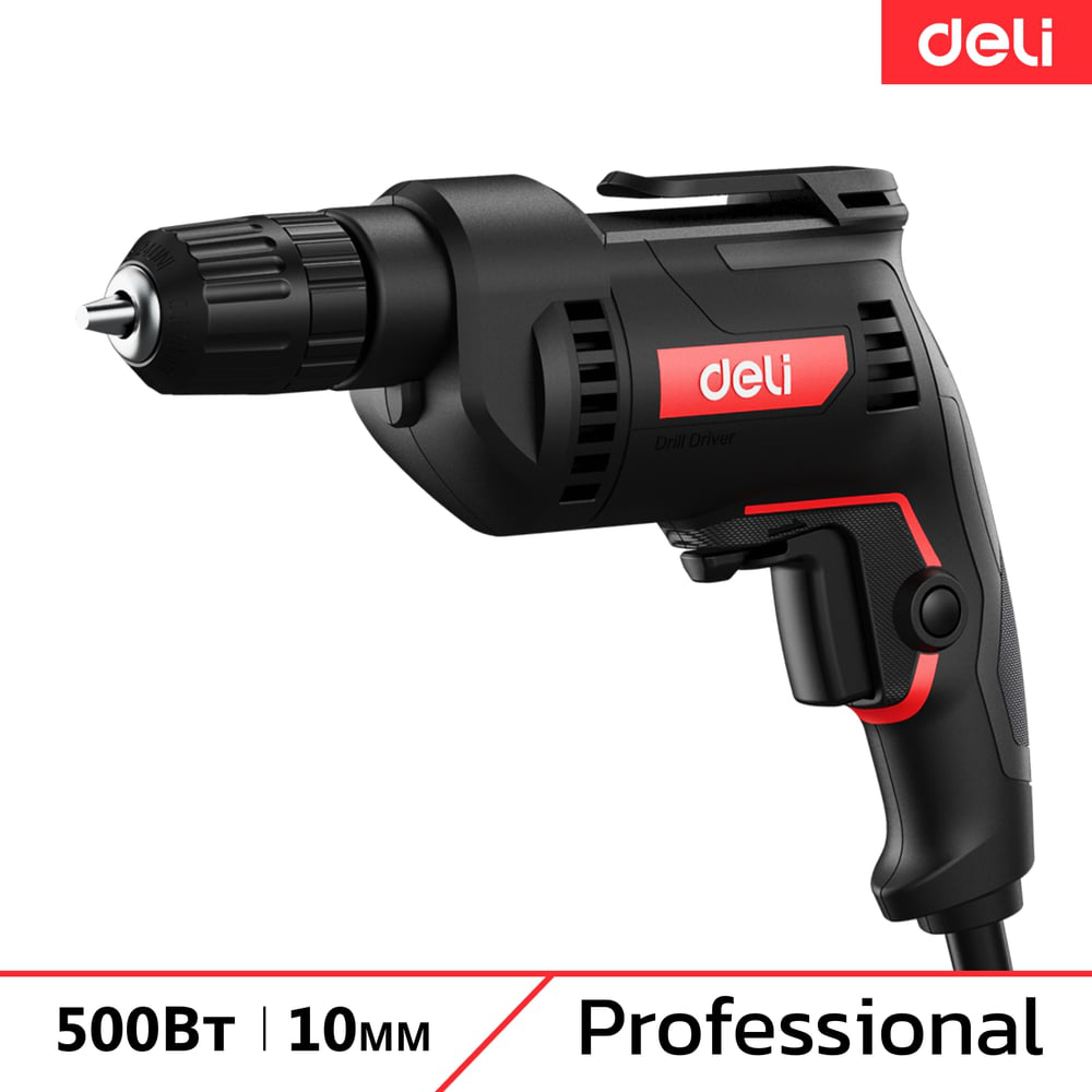 Дрель электрическая сетевая безударная Дели DE-DZ10-1E – компактная, лёгкая дрель предназначена для закручивания/откручивание шурупов, саморезов, винтов и для проделывания отверстий в древесине до 25 мм и металле до 10 мм. Незаменимый помощник для работы дома своими руками, на стройке, в гараже, на небольших производствах. Оснащена функцией реверса для облегченного изъятия сверла при застревании и быстрозажимным патроном для быстрой смены оснастки. Регулировка скорости осуществляется силой нажатия на курок. Кнопка фиксации клавиши "Пуск" обеспечивает удобство при продолжительной работе. В конструкции дрели предусмотрена поясной держатель (встроенная клипса) для крепления инструмента на поясе/ремне. Эргономичная рукоять с резиновой вставкой удобно лежит в руке и не скользит во время работы. Модель не зависит от аккумулятора и его заряда, работает от электросети 220-230В.