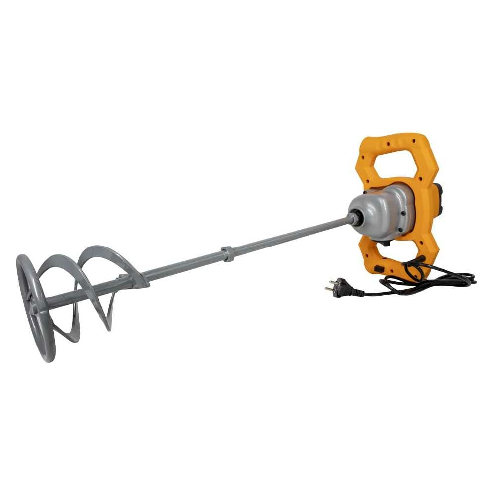 Вихрь СМ-1100Э-2 – электрический строительный миксер позволит быстро и эффективно смешать краску, цемент, бетон, клей, любую строительную смесь. Двигатель мощностью 1100 Вт запускается посредством нажатия кнопки, расположенной на рукоятке. Электронная регулировка частоты вращения (от 150 до 650 об./мин) и возможность выбора одной из 2 возможных скоростей позволяет адаптировать устройство под любой материал в зависимости от вязкости и консистенции ингредиентов. Оснастка фиксируется в патроне М14 с резьбовым соединением и может меняться при проведении разных работ. Рукоятка переключения скоростей расположена на корпусе патрона, колесико регулятора оборотов размещено на рукоятке. В комплектацию входят 2 гаечных ключа, насадка и запасные щетки для двигателя. Строительный миксер весит 5,1 кг. Для удобства работы он оснащен двумя симметричными ручками из прочного пластика, которые позволяют надежно удерживать инструмент при произведении замеса. Эффективная, надежная модель Вихрь СМ-1100Э-2 будет полезна при проведении строительных и ремонтных работ, а также может пригодиться в пищевой промышленности. С ее помощью вы легко и быстро приготовите любую смесь в больших объемах.