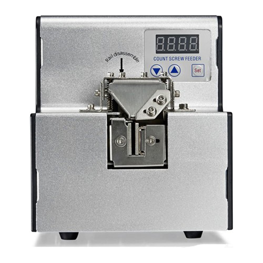 Это устройство предназначено для непрерывной подачи винтов или саморезов в удобном для захвата положении. В специальном отсеке может храниться большое количество винтов. Есть встроенный счетчик винтов. Фидер подаёт винты на жёлоб, по которому они перемещаются под действием вибрации в сторону подачи. Устройство работает с винтами от M1.0 до M5.0 с длиной под головкой до 19 мм. Фидер значительно упрощает и ускоряет работу монтажника. Однако после настройки под конкретный размер крепежа его не нужно будет перенастраивать. Для работы с другим типом крепежа потребуется повторная настройка или установка второго податчика винтов. В комплекте с устройством есть адаптер питания и набор для калибровки. Дополнительные аксессуары для начала работы не требуются.