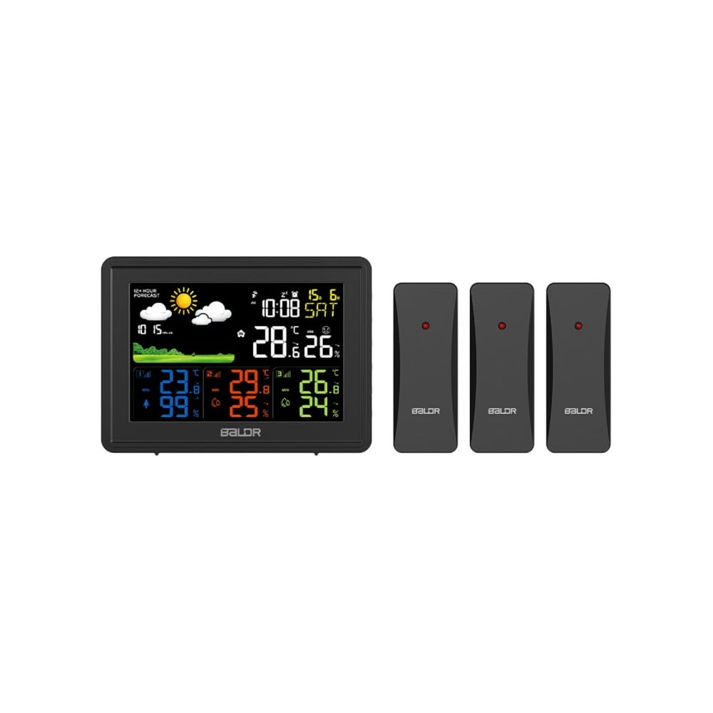 Беспроводная метеостанция BALDR B0359WST4H4PR-BLACK оснащена большим, легко читаемым дисплеем с подробными данными о температуре, влажности и прогнозе. Светодиодный экран также показывает барометрическое давление, что делает прогноз погоды на следующие 12+ часов более точным. Контролируйте микроклимат в помещении и на улице с помощью данных, включая самые высокие и самые низкие значения температуры и влажности. Диапазон температур в помещении: -10°C..50°C Диапазон температур на улице: -40°C..60°C Функции времени и будильника также встроены для вашего удобства. В комплект входит три беспроводных дистанционных датчика для определения температуры и влажности наружного воздуха.