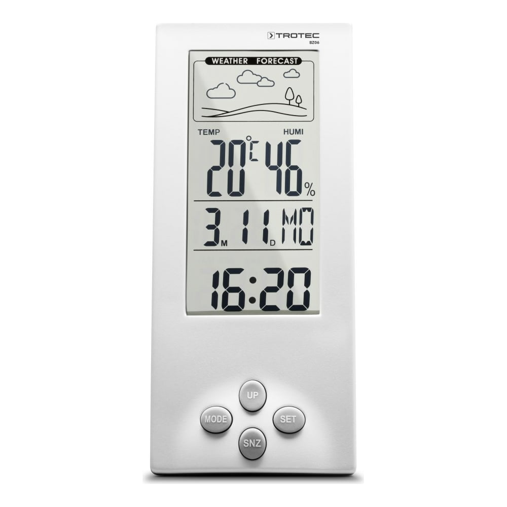 Погодная станция TROTEC BZ06 надежна и проста в использовании. Предоставляет информацию о текущей температуре и влажности воздуха в любом помещении. На экране, кроме основных параметров, отображаются дата, день недели и время. Большой прозрачный ЖК-дисплей обеспечивает легкое считывание данных. Благодаря лаконичному дизайну прибор органично впишется в интерьер.