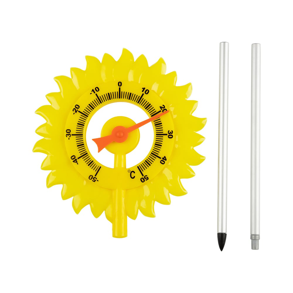 Термометр-штекер биметаллический "Солнышко" ТМ Leonord.Диапазон измерений: от -50 до +50 градусов ЦельсияМатериал: ABS пластик, полипропилен, алюминий, железоникелевый сплавПредназначен для измерения температуры воздухаНе требует батареек.