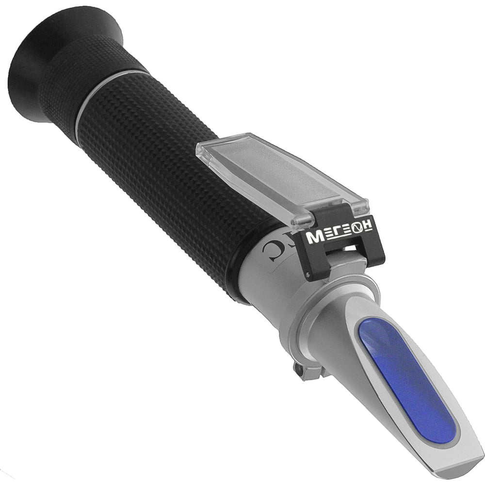 МЕГЕОН 72029 относится к оптическим измерительным приборам - рефрактометрам, которые предназначены для определения коэффициента преломления исследуемого вещества и проецировании отраженного света на специально отградуированный экран. Характеристики жидкости (концентрация, плотность и т.д.), устанавливаемые рефрактометром, определяют вид шкалы, нанесенной на экран. Для повышения точности предусмотрена система автоматической температурной коррекции (ATC), которая имеет широкий температурный диапазон работы. Для исследования достаточно нанести две- три капли на призму с градуировкой, закрыть прижимное стекло и настроить фокусировку. Не требуется источник питания, что даёт возможность производить измерения при низких температурах. Эргономичный корпус из алюминиевого сплава и простота эксплуатации максимально увеличивают срок службы изделия.
