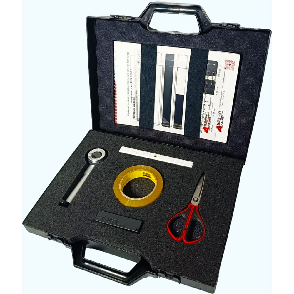 Набор ОСЗП разработан и изготовлен в полном соответствии со стандартом ISO 8502-3 (Подготовка стальных поверхностей перед нанесением лакокрасочных материалов и относящихся к ним продуктов. Испытания для оценки чистоты поверхности. Часть 3 - Оценка запыленности стальных поверхностей, подготовленных к окрашиванию (метод липкой ленты). Описанный метод представляет собой качественный тест, полезный для стальной поверхности перед очисткой соответствующей степени ржавчины A, B или C. Пыль на стальных поверхностях, очищенных пескоструйной обработкой, может снизить адгезию наносимых впоследствии органических покрытий и, поглощая влагу, может способствовать коррозии стальных поверхностей, очищенных пескоструйной обработкой. Перед покраской следует провести специальную проверку, чтобы убедиться в том, что такие участки надлежащим образом очищены и в достаточной степени очищены от пыли. Принцип действия набора: на стальную поверхность, подготовленную к покраске, прижимается клейкая лента, чувствительная к давлению. Затем ленту с прилипшей к ней пылью снимают и помещают на демонстрационную доску цвета, контрастирующего с цветом пыли, и осматривают визуально. Затем, с помощью шаблонов (в наборе), оценивается количество пыли, прилипшей к ленте, и размер пылевых частиц. Данный комплект используется в соответствии с BS EN ISO 8502-3 в качестве теста по методу “Пройдено/не пройдено”, или для перманентной регистрации степени запыленности.