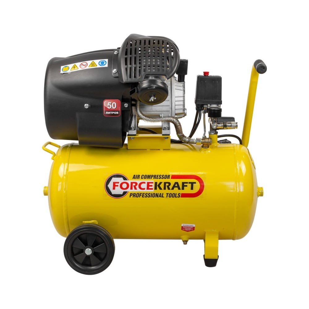 Компрессор поршневой масляный с прямым приводом FORCEKRAFT - идеальный вариант для гаража и дома. Надежную работу обеспечивают масляный тип смазки, прямой привод, механический предохранитель клапана высокого давления и выключатель давления. Домашний компрессор оснащен двухцилиндровым двигателем, а также двумя манометрами для регулировки давления. Качество работы с компрессором повышается за счет антивибрационной подушки, которая поглощает вибрацию при любой частоте работы двигателя.Модель оснащена индикатором уровня масла и защитой от перегрузок, что увеличивает срок службы компрессора. Благодаря штуцерам двух типов изделие подойдет для любых пневматических устройств (краскопульт или пневмопистолет).Компрессор поршневой масляный - компактный и многофункциональный инструмент, предназначена для помещений с ограниченной площадью или для небольших производственных задач. Благодаря наличию колес, передвижной компрессор легко использовать на даче для продувки труб водоснабжения перед зимой, или даже дома для продувки водопровода.