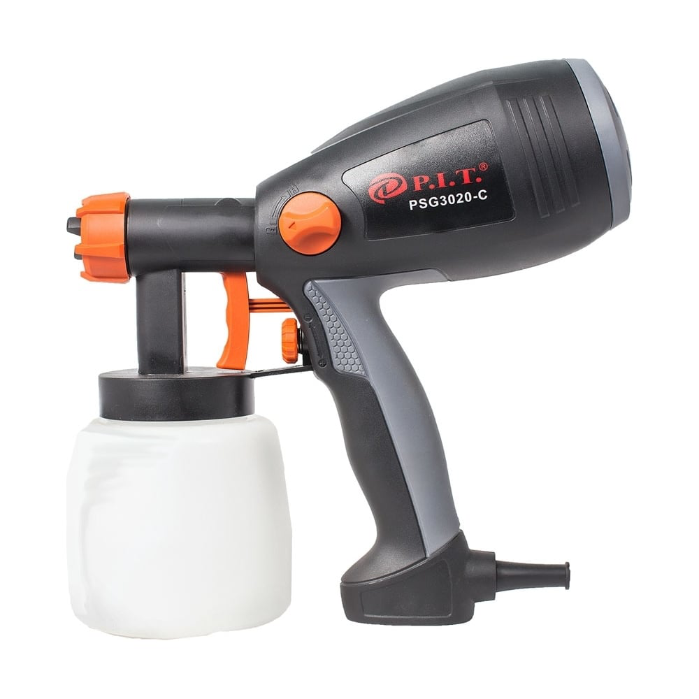 Краскораспылитель P.I.T. МАСТЕР PSG3020-C служит для окрашивания небольших поверхностей. Его конструкция состоит из электродвигателя с компрессорным механизмом, подающим воздух к форсунке. Наличие специального регулятора позволяет изменять расход воздуха и распыляемого материала. Бачок краскораспылителя располагается снизу, что открывает лучший обзор рабочей области.