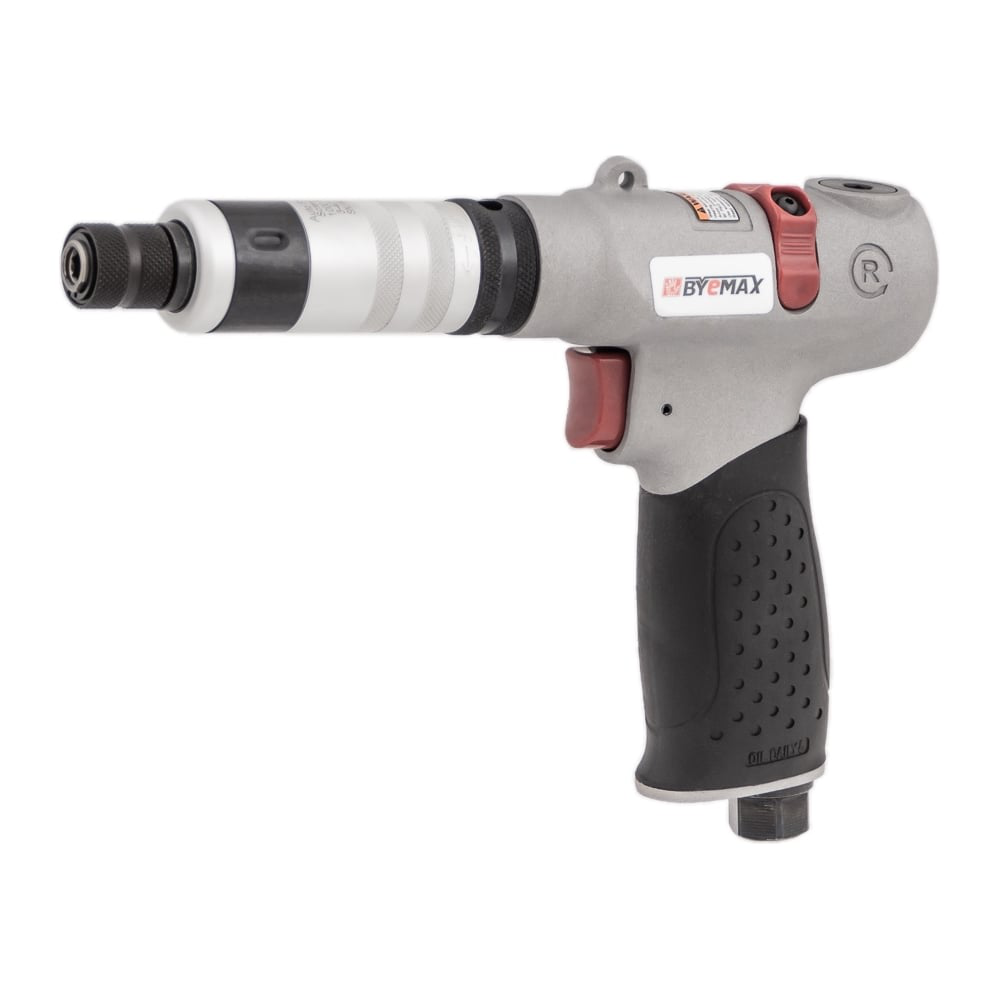 Пневмошуруповерт BYEMAX BM-AS104 – легкий, компактный и крайне надежный сборочный пневмошуруповерт пистолетного типа с автоотключением. Диапазон момента затяжки 0,4-4,5 Нм. Отличается высокой производительностью и большим эксплуатационным ресурсом. Отличительные особенности: Наружная регулировка момента затяжки Планетарная система передачи с игольчатыми подшипниками обеспечивает точный и постоянный момент затяжки Три варианта подвода воздуха дают свободу действий по оптимизации рабочего места и удобства работы Небольшой вес, эргономичная обрезиненная рукоять, низкий уровень звукового давления Выхлоп отработанного воздуха сзади