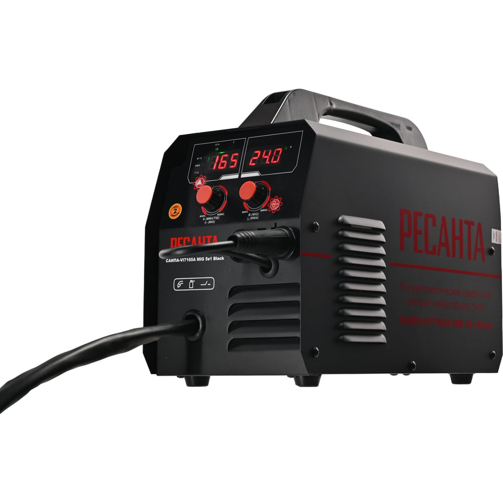 Ресанта САИПА-VI7165А MIG 5в1 Black – сварочный полуавтоматический инверторный аппарат с режимами сварки MIG/MAG и MMA, обеспечивающий соединение элементов из черных или цветных металлов.Однофазный полуавтомат отличается простотой использования. Автоматическая подача проволоки повысит производительность, так как не требуется перерыв на замену электрода, обеспечит аккуратность швов. Возможность прогона проволоки на холостом ходу позволяет моментально очистить сопло горелки. Модель обеспечивает быструю и качественную сварку заготовок методом MIG/MAG, пригодным для сред из инертных и активных газов, или MMA (ручная дуговая сварка штучными электродами). Удобной опцией является возможность проведения сварки без применения газа с применением порошковой проволоки. Сварочный аппарат отличается наличием таких важных функций, как Antistick (антиприлипание электрода), Hotstart (облегчение старта за счет автоматического повышения сварочного тока), Arcforce (устойчивость дуги), смена полярности (защита тонкого материала от прожигания), защита от перегрева. На корпусе устройства имеются регуляторы сварочного тока, напряжения, скорости автоматической подачи проволоки, силовые клеммы, индикатор подключения.Эффективная и простая в эксплуатации модель Ресанта САИПА-VI7165А MIG 5в1 Black пригодится в быту, автомастерской, на строительном или ином объекте.