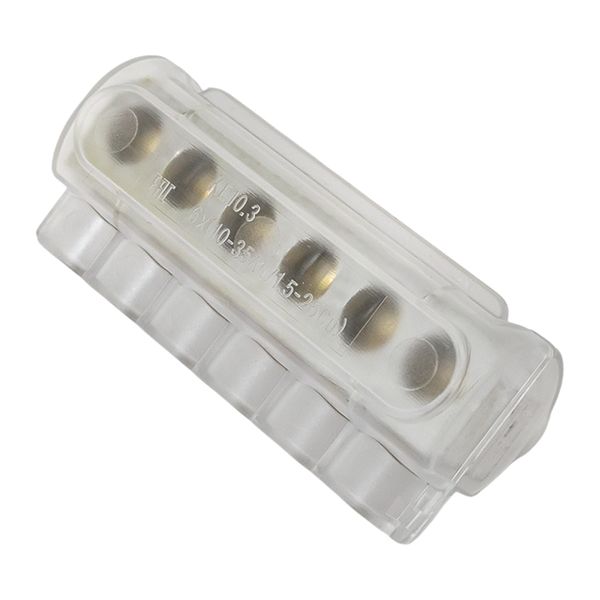 Клеммник уличного освещения типа ke-10.3 предназначен для соединения и разветвления 6-х жильных кабелей внутри стоек или щитов опор и мачт уличного освещения. Подходит для медных и алюминиевых проводов. При подключении проводов необходимо зачистить концы от изоляции. Контакт с зачищенным проводом обеспечивается прижимными винтами с внутренним шестигранником. На проводящие части нанесена контактная смазка. Корпус клеммника неразборный.