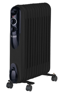 Мощный, надёжный, безопасный масляный радиатор чёрного цвета модели Ресанта ОМПТ-12НЧ предназначен для обогрева помещений площадью до 30 м². Он состоит за 11-ти металлических секций. Внутри прибора залито минеральное масло, нагреваемое ТЭНом, который расположен в нижней части корпуса. Конструкция позволяет быстро выходить на режим нагрева, равномерно распределять тепло и при этом не пересушивать воздух в помещении. Мощность масляного нагревателя составляет 2.5 кВт с возможностью выбора одного из трёх режимов нагрева: 1 – 1000 Вт, 2 – 1500 Вт и 3 – 2500 Вт. Работа агрегата контролируется регулируемым термостатом. Присутствует также система термозащиты, которая предназначена для отключения обогревателя в случае перегревов. Для удобной переноски прибора он оснащён ручкой. В конструкции имеется встроенный отсек для хранения шнура питания. Шнур длинный, что позволяет устанавливать масляный обогреватель в любом удобном месте. Модель обогревателя Ресанта ОМПТ-12НЧ питается от обычной бытовой элестросетисети – 220 В, 50 Гц. Вес агрегата – 8.3 кг.