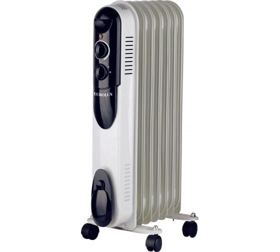 Eurolux ОМПТ-EU-7Н - модель 7-секционного масляного обогревателя предназначена для комфортного обогрева помещения до 20 м2, а также может быть использована в качестве дополнительного источника тепла на более просторных площадях. Прибор функционирует посредством нагрева до высокой температуры минерального масла, залитого внутрь корпуса. Нагревательный элемент – ТЭН. Мощность этого масляного обогревателя составляет 1.5 кВт. При этом он может работать в трёх режимах нагрева: 1 – 600 Вт, 2 – 900 Вт и 3 – 1500 Вт. Прибор работает под управлением термостата. К преимуществам модели важно отнести наличие длинного шнура питания, позволяющего размещать прибор в удобном месте помещения. Удобство ещё и в том, что для хранения шнура на корпусе предусмотрен кронштейн для намотки шнура с фиксатором для вилки. Для перемещения и транспортировки обогревателя в основную комплектацию входят ручки и кронштейны с колёсиками. Вес агрегата – 6 кг. Питание от бытовой электросети – 220 В, 50 Гц.