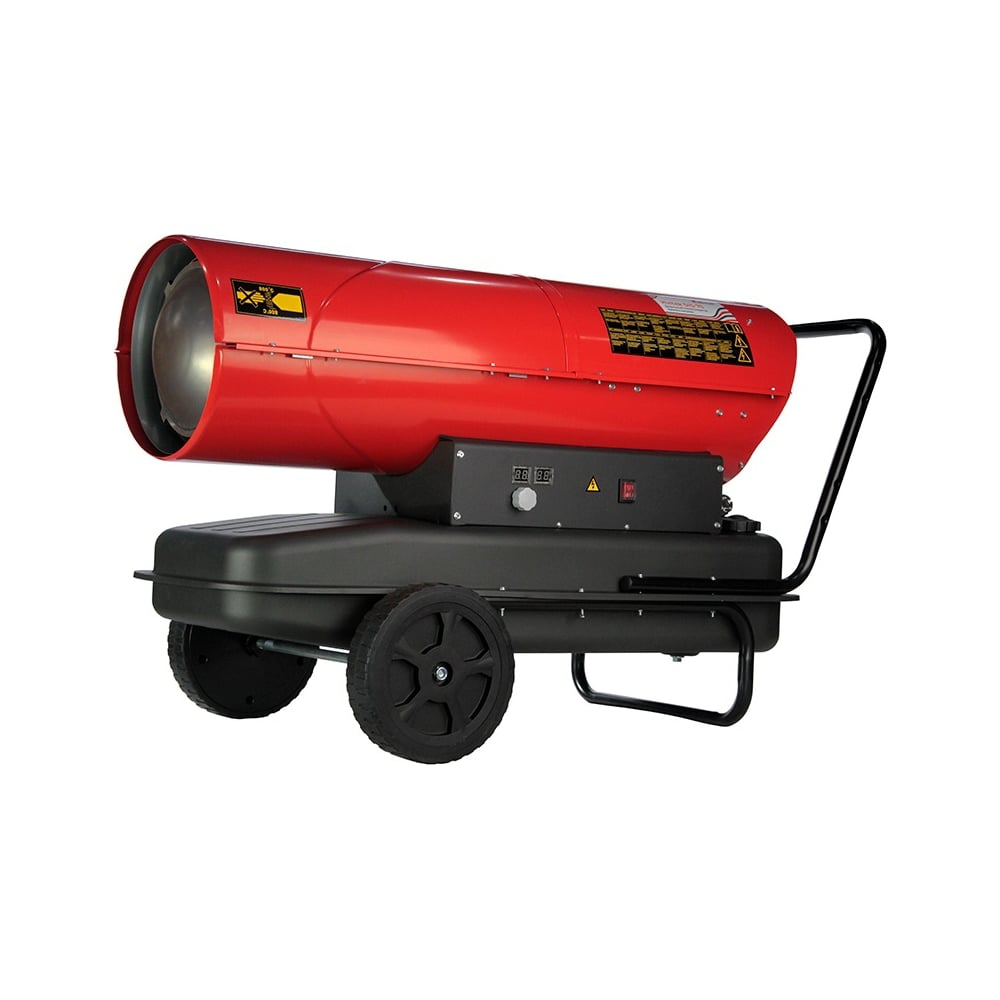 Дизельная пушка Hintek dis 70 04.06.05.000026 предназначена для обогрева промышленных и складских помещений, где не используются и не хранятся легковоспламеняемые или взрывоопасные вещества и материалы. Уровень КПД прибора близок к 100%. Тепловая мощность в 70 кВт достаточна для использования пушки в качестве основного источника тепла. Защитный термостат отключит прибор при перегреве камеры сгорания. Безопасность обеспечивается электронной платой управления, которая контролирует температурный датчик и фотоэлемент, который прекращает подачу топлива, при этом вентилятор продолжает работать 90 секунд, после чего отключается.