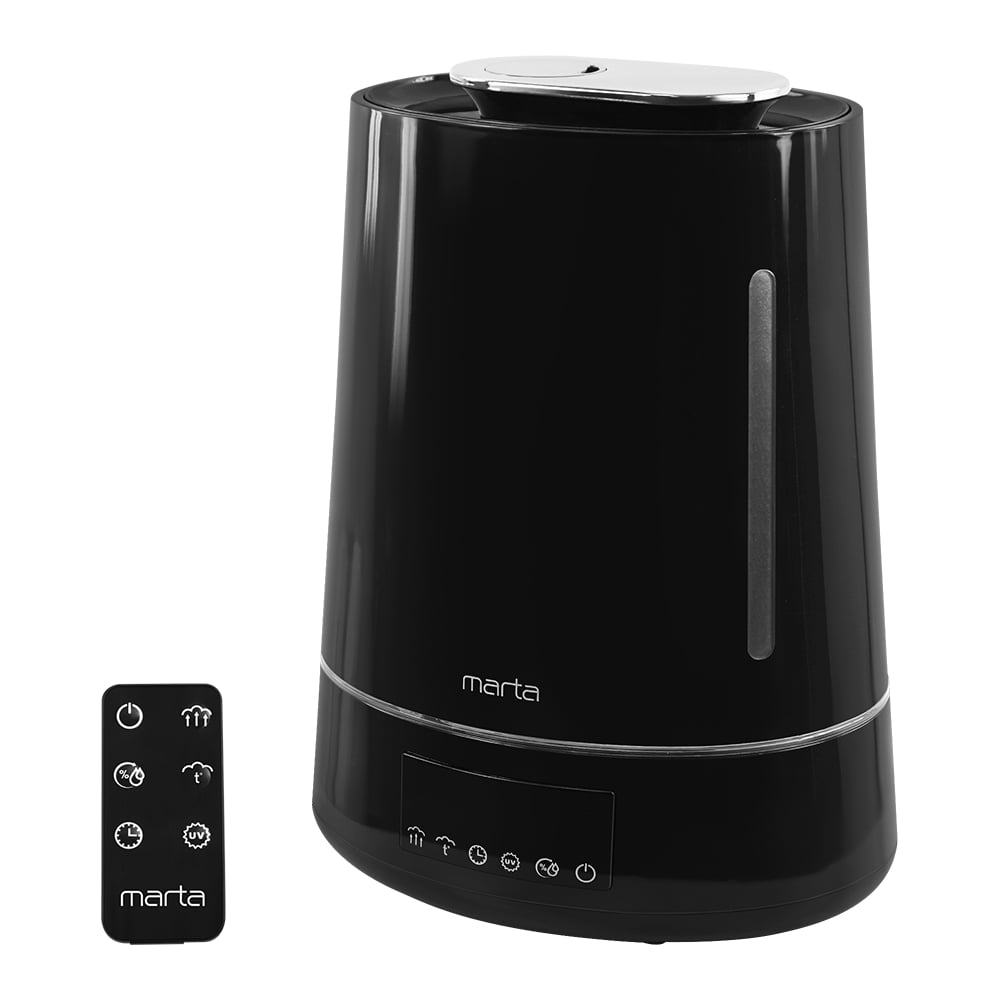 Увлажнитель воздуха MARTA MT-HF4701D(1-6) черный/серебро, с верхним заливом, УФ-лампой и теплым паром 43735