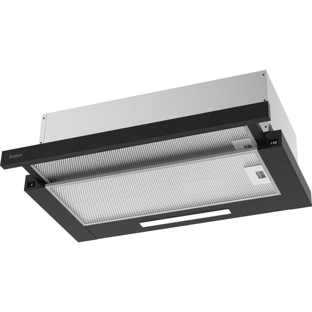 Встраиваемая телескопическая вытяжка Evelux Tel 60 – это универсальное решение для кухни любого метража. Ширина вытяжки 60 см соответствует стандартным полноразмерным варочным поверхностям. Корпус вытяжки скрыт за фасадом настенного шкафа, а рабочая панель в классических цветах выдвигается только в процессе использования. Два режима: умеренный и мощный – переключаются нажатием кнопок справа на панели управления. Вытяжка начнет работу в том режиме, в котором была выключена. Выдвижная панель из металла легко очищается специальными средствами от жира и пыли, не нагревается при длительном использовании подсветки. Яркие LED-лампы существенно экономят электроэнергию в сравнении с лампами накаливания и долговечны. Алюминиевые фильтры предохраняют мотор от попадания частиц жира. Алюминиевые фильтры предохраняют мотор вытяжки от попадания жира. Угольные фильтры забирают на себя запахи и копоть, очищая воздух в режиме рециркуляции, когда вытяжка не подключена к вентиляционному каналу.