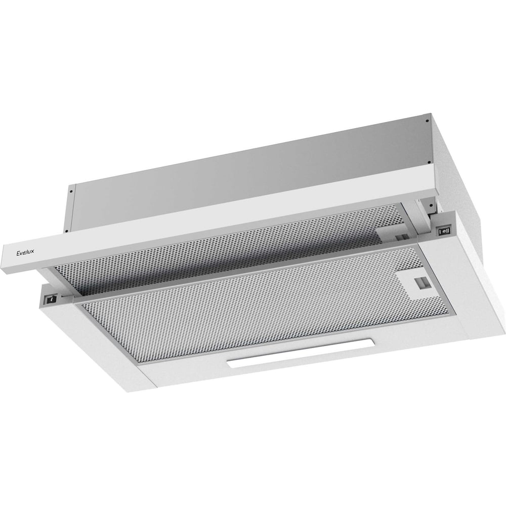 Встраиваемая телескопическая вытяжка Evelux Tel 60 – это универсальное решение для кухни любого метража. Ширина вытяжки 60 см соответствует стандартным полноразмерным варочным поверхностям. Корпус вытяжки скрыт за фасадом настенного шкафа, а рабочая панель в классических цветах выдвигается только в процессе использования.Два режима: умеренный и мощный – переключаются нажатием кнопок справа на панели управления. Вытяжка начнет работу в том режиме, в котором была выключена. Выдвижная панель из металла легко очищается специальными средствами от жира и пыли, не нагревается при длительном использовании подсветки. Яркие LED-лампы существенно экономят электроэнергию в сравнении с лампами накаливания и долговечны.Алюминиевые фильтры предохраняют мотор от попадания частиц жира. Алюминиевые фильтры предохраняют мотор вытяжки от попадания жира. Угольные фильтры забирают на себя запахи и копоть, очищая воздух в режиме рециркуляции, когда вытяжка не подключена к вентиляционному каналу.