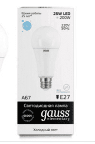В нашем магазине «Главэлектрика» в Чебоксарах - Марпосадском, вы можете приобрести товар: «Gauss LED Elementary A67 25W E27 6500K » с доставкой по г. Чебоксары - Марпосадское.