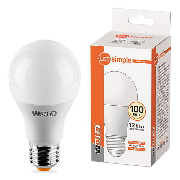 Лампа светодиодная Wolta A60 12Вт 25Y60BL Е27 3000К - это энергоэффективный и яркий источник освещения для вашего дома или офиса. Светильник обладает мощностью 12Вт, что эквивалентно обычной лампе накаливания мощностью 75Вт. Цветовая температура 3000К создает теплый и уютный свет, идеальный для создания комфортной атмосферы в помещении. Лампа имеет цоколь Е27, что позволяет легко установить ее в любое стандартное осветительное устройство. Продукт обладает длительным сроком службы до 25000 часов, что делает его надежным и долговечным выбором для освещения.