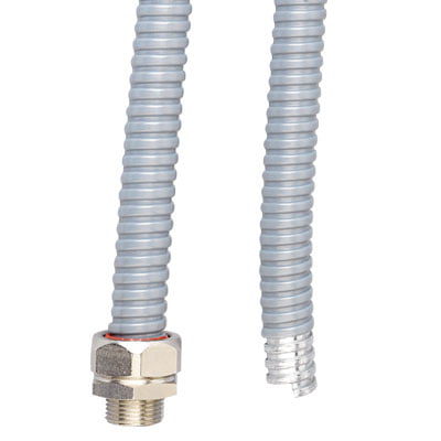 Цветовое исполнение данного металлорукава - серый. Он хорошо впишется в любой интерьер и не будет выбиваться из общего стиля помещения. Благодаря своей цветовой гамме этот металлорукав может быть использован как в офисных помещениях, так и в жилых квартирах.