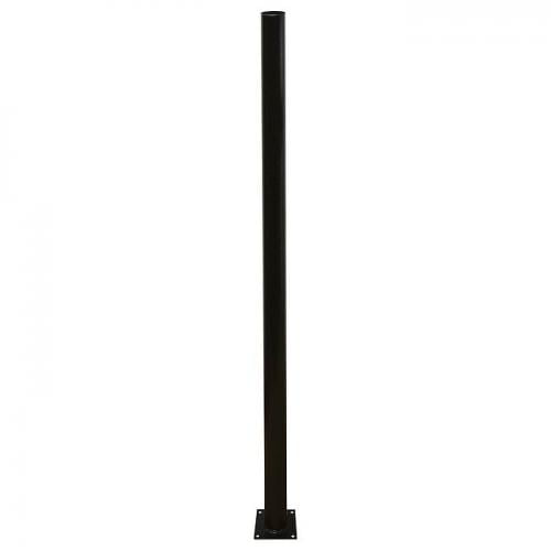Металлическая опора изготовлена из стальной трубы (толщина стенки 2 мм, диаметр 60 мм). Квадратное основание из листовой стали (110х110х2 мм) с отверстиями под анкерные болты М8.