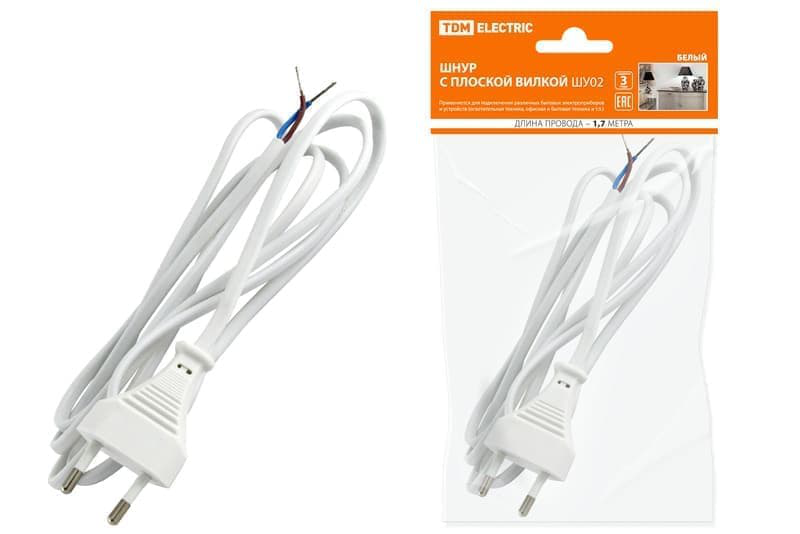 В нашем магазине «Главэлектрика» в Чебоксарах - Марпосадском, вы можете приобрести товар: «Шнур сетевой без выкл. 1,7 м с плоск. вилкой без з/к ШВВП 2х0,75мм2 ШУ02 белый TDM » с доставкой по г. Чебоксары - Марпосадское.