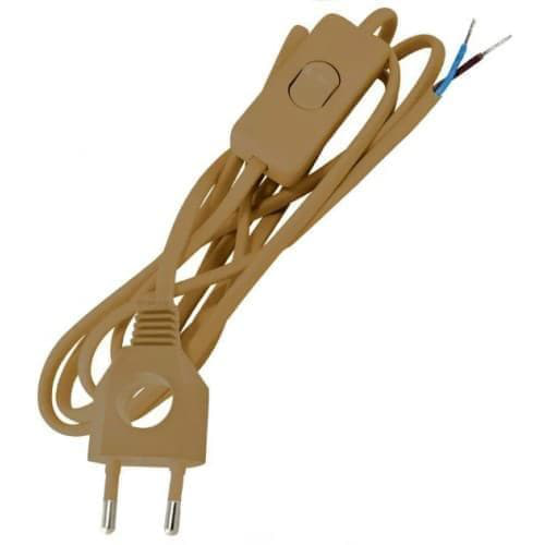 Сетевой шнур с выключателем длиной 2 метра и плоской вилкой без защитного контакта. Изготовлен из проводов сечением 2х0,75 мм², обмотка выполнена из бронзы. Модель ШУ01В производства TDM. Идеально подходит для подключения электроприборов к сети.