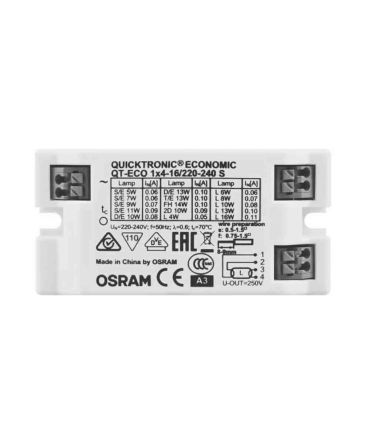 ЭПРА Osram QT-ECO 1x4-16 S - это электронное устройство для подключения компактных люминесцентных ламп. Оно обеспечивает стабильное питание лампы, защищает её от колебаний напряжения и увеличивает срок службы. ЭПРА Osram QT-ECO 1x4-16 S легко монтируется и подходит для использования в различных помещениях, где необходимо качественное освещение. Благодаря высокой энергоэффективности, данное устройство помогает сэкономить электроэнергию и уменьшить нагрузку на электросеть.