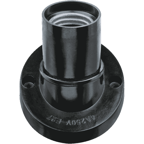 Электропатрон (патрон) с резьбой Е27 в металлической гильзе, с креплением за прямой фланец, с винтовыми контактными зажимами для присоединения медных, алюминиевых и алюмомедных проводов сечением 0,5-2,5 мм