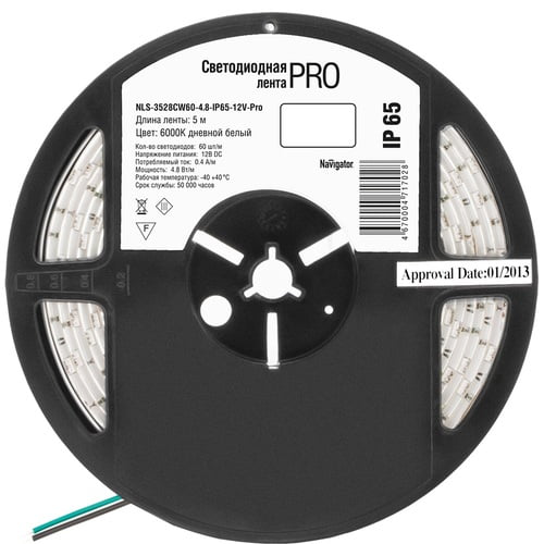 Светодиодная лента Navigator IP65 12V 4.8Вт/м 6000К NLS-3528CW60 серия PRO СД (5м), 71702 - это высококачественная светодиодная лента длиной 5 метров, предназначенная для использования внутри и снаружи помещений благодаря классу защиты IP65. Свет ленты имеет холодный оттенок 6000К, что обеспечивает яркое и чистое освещение. Светодиоды обладают низким энергопотреблением - всего 4.8Вт на метр, что делает эту ленту энергоэффективным решением для освещения. Светодиодная лента Navigator серии PRO СД отличается высоким качеством и долгим сроком службы, что делает ее идеальным выбором для различных задач освещения.