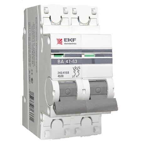 Автоматические выключатели ВА 47-63 4,5 кА EKF PROxima являются механическими коммутационными аппаратами и соответствуют ГОСТ Р50345-2010. Особенностью данной серии выключателей является усовершенствованная конструкция. В выключателях имеются пластиковые крышки, закрывающие доступ к винтовому зажиму и служащие для опломбирования выключателей, что исключает несанкционированный доступ к проводникам. Корпус выключателей усилен дополнительными заклепками для устранения эффекта расхождения корпуса. Выключатели оборудованы удобной ручкой управления, обеспечивающей надежное оперирование изделиями. На лицевой панели выключателей имеется цветовой индикатор состояния. Конструкция установочного зажима обеспечивает свободную установку выключателя на DIN-рейку.