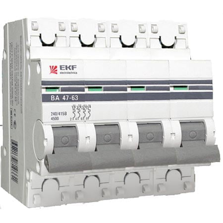 ОБНОВЛЕНИЕ ЛИНЕЙКИ PROXIMA Артикул аналог: M634432D Автоматические выключатели ВА 47-63 4,5 кА EKF PROxima являются механическими коммутационными аппаратами и соответствуют ГОСТ Р50345-2010. Особенностью данной серии выключателей является усовершенствованная конструкция. В выключателях имеются пластиковые крышки, закрывающие доступ к винтовому зажиму и служащие для опломбирования выключателей, что исключает несанкционированный доступ к проводникам. Корпус выключателей усилен дополнительными заклепками для устранения эффекта расхождения корпуса. Выключатели оборудованы удобной ручкой управления, обеспечивающей надежное оперирование изделиями. На лицевой панели выключателей имеется цветовой индикатор состояния. Конструкция установочного зажима обеспечивает свободную установку выключателя на DIN-рейку.