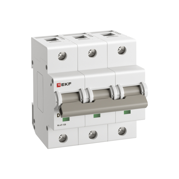Автоматические выключатели ВА 47-125 PROXIMA EKF благодаря высокой предельной коммутационной способности 15 кА могут использоваться вместо силовых автоматических выключателей. Выключатели имеют ширину корпуса 1,5 модуля (27 мм), производятся с номинальными токами до 125 А. Для надежного гашения дуги используется двойной разрыв контактов и две дугогасительные камеры. Оптимальная токопроводимость обеспечивается серебросодержащей контактной группой.