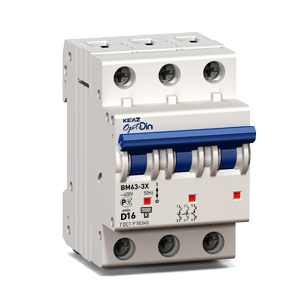 Модульный автоматический 3 полюсный выключатель переменного тока с предельной коммутационной способностью при переменном токе 6 кА на номинальный ток 40 А .