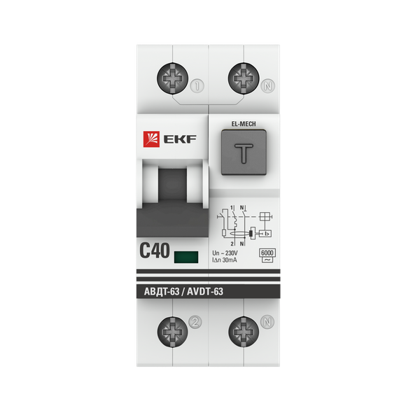 ОБНОВЛЕНИЕ ЛИНЕЙКИ PROXIMA Артикул аналог: D63N26M40C30 Автоматический выключатель дифференциального тока АВДТ-63 EKF PROxima представляет аппарат, сочетающий функции автоматического выключателя с электромеханическим или электронным УЗО. При обнаружении автоматическим выключателем в защищаемом участке сети тока утечки (повреждения) на землю или сверхтока (тока перегрузки или короткого замыкания) происходит срабатывание устройства, приводящее к отключению защищаемой сети. Возможна коммутация алюминиевым и медным проводником. Автоматический выключатель дифференциального тока малогабаритный АВДТ-63М EKF PROxima представляет аппарат, сочетающий функции автоматического выключателя с электронным УЗО типа АС в компактном корпусе шириной один модуль. При обнаружении автоматическим выключателем на защищаемом участке сети тока утечки (повреждения) на землю или сверхтока (тока перегрузки или короткого замыкания) происходит срабатывание устройства, приводящее к отключению защищаемой сети. Особое отличие дифференциальных автоматических выключателей EKF с электронным УЗО – в наличии блока защиты от перенапряжения. Возможна коммутация алюминиевым и медным проводом.
