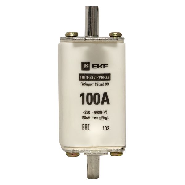 Плавкая вставка ППН-33 160/100А габарит 00 EKF. Предохранители плавкие ППН EKF, укомплектованные плавкими вставками типа gG/gL, предназначаются для защиты кабельных линий и промышленных электроустановок от токов перегрузки и короткого замыкания. Предохранители применяются в электрических сетях переменного тока частотой 50 Гц с напряжением до 660В. Применяются для крепления в распределительных и вводно-распределительных устройствах. Предохранители плавкие ППН могут устанавливаться в основание с держателем, а также в специально предназначенные рубильники. В комплект поставки предохранителей плавких ППН основание с держателем не входит и приобретается отдельно.