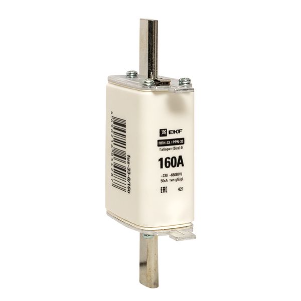 Плавкая вставка ППН-33 160/160А габарит 0 EKF. Предохранители плавкие ППН EKF, укомплектованные плавкими вставками типа gG/gL, предназначаются для защиты кабельных линий и промышленных электроустановок от токов перегрузки и короткого замыкания. Предохранители применяются в электрических сетях переменного тока частотой 50 Гц с напряжением до 660В. Применяются для крепления в распределительных и вводно-распределительных устройствах. Предохранители плавкие ППН могут устанавливаться в основание с держателем, а также в специально предназначенные рубильники. В комплект поставки предохранителей плавких ППН основание с держателем не входит и приобретается отдельно.