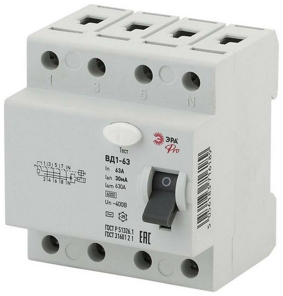 УЗО (устройство защитного отключения) ЭРА ВД1-63 электромеханическое – это высококачественное и надежное устройство, предназначенное для обнаружения и автоматического отключения электрической цепи в случае возникновения утечки тока.