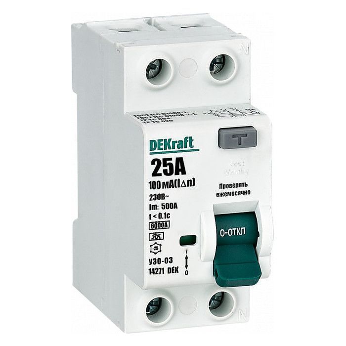УЗО DEKraft УЗО-03 2P 25А 6 кА, 100 мА (A), 14271DEK - это двухполюсное устройство защитного отключения, предназначенное для обеспечения безопасности электрических цепей. Данное УЗО имеет номинальный ток 25А и предельную отключающую способность 6 кА. Также оно оснащено дополнительной функцией защиты от утечки тока на уровне 100 мА, что обеспечивает надежную защиту от поражения электрическим током. УЗО DEKraft УЗО-03 2P 25А 6 кА, 100 мА (A), 14271DEK идеально подходит для использования в бытовых и промышленных электрических сетях, обеспечивая надежную защиту от коротких замыканий и утечек тока.