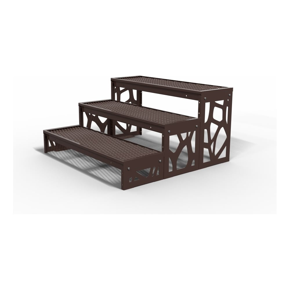 Лестница с тремя ступенями для крыльца в стиле «Лофт». Прочная конструкция с рифленым покрытием ПВЛ, которое обеспечивает отличное сцепление и устойчивость к воздействию окружающей среды. Лестница оснащена замкнутым металлическим контуром, защищающим покрытие и предотвращающим механические повреждения. Каркас обработан порошковой окраской RAL 8017, что гарантирует долговечность и защиту от коррозии. Возможно наращивание ступеней по длине и ширине. Преимущества: Прочное покрытие ПВЛ с рифленой поверхностью для надежного сцепления. Замкнутый металлический контур предотвращает повреждения покрытия. Порошковая окраска RAL 8017 для защиты от коррозии. Скрытые крепежи для удобства ухода и эстетики. Возможность расширения по длине и ширине.